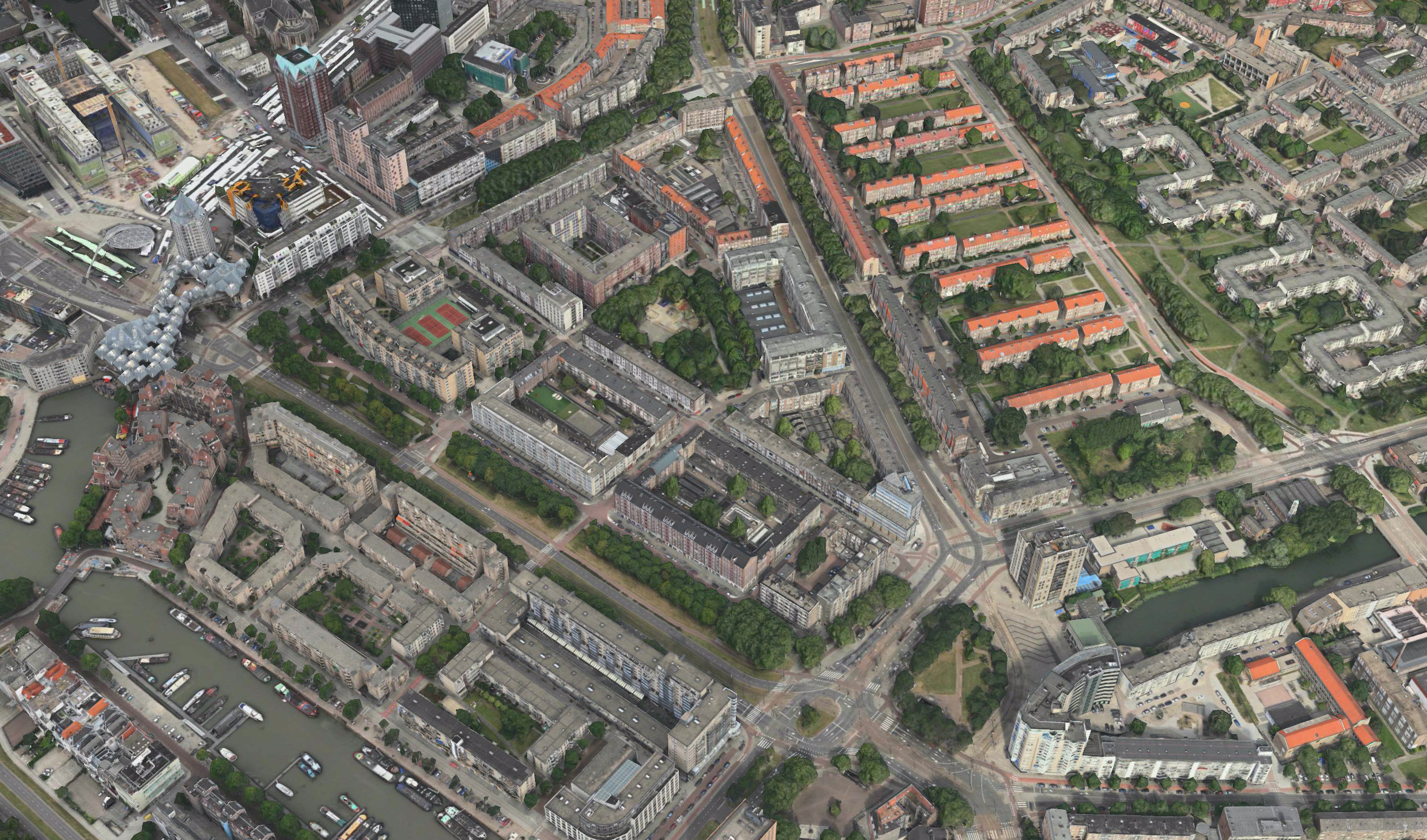 GeschiedenisDe Stadsdriehoek is de liggende vijfhoek die gevormd wordt door het Oostplein, de Goudsesingel, de Coolsingel en de aaneengesloten Blaak en Burgemeester van Walsumweg. In dit hart is Rotterdam ontstaan, als een klein gehucht aan de Maas. Daar waar de Rotte uitmondde in de Maas vestigden zich de eerste Rotterdammers aan weerzijden van de Rotte. Rond 1270 werd haaks op deze lintbebouwing langs het riviertje de Rotte (tegenwoordig Binnenrotteplein) een 400 meter lange dijk aangelegd, de Middeldam. De huidige Hoogstraat volgt deels deze structuur.