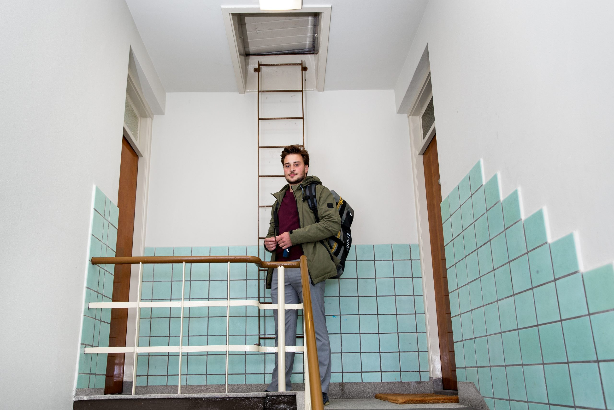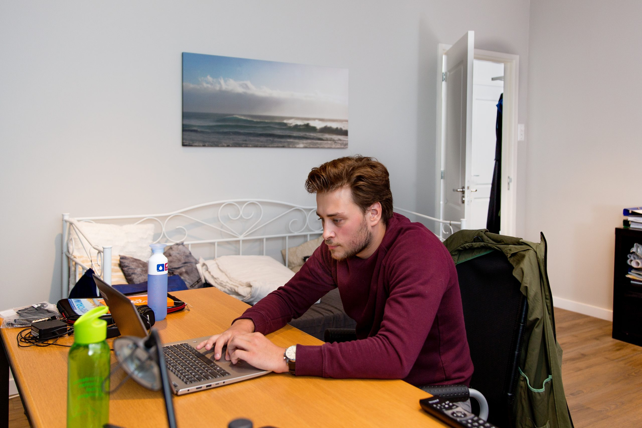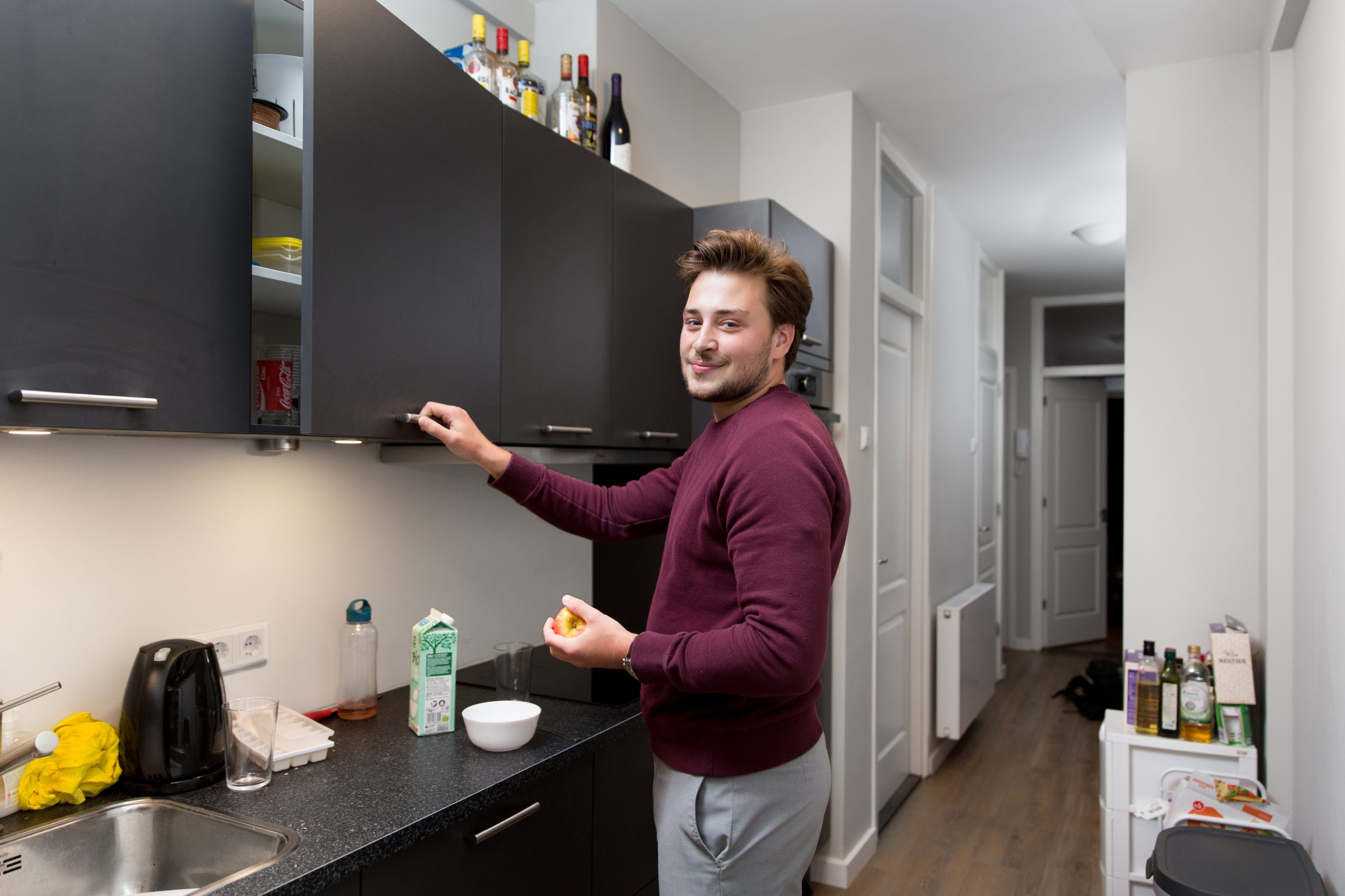 De twintigjarige Karsten de Pauw uit Antwerpen is - sinds hij op de middelbare school bij een zwemclub terecht kwam - mega geïnteresseerd in water. Toen hij een studie moest kiezen, kwam hij al gauw uit bij watermanagement op de Hogeschool Rotterdam. Dit betekent wel dat hij als achttienjarige naar een andere stad in een ander land moest verhuizen. “Het was even wennen, maar ik heb super gemakkelijk nieuwe vrienden gemaakt.” Inmiddels woont hij twee jaar in zijn gedeelde appartement op de Hoogstraat. Karsten is net begonnen aan zijn derdejaarsstage bij een architectenbureau in Den Haag.