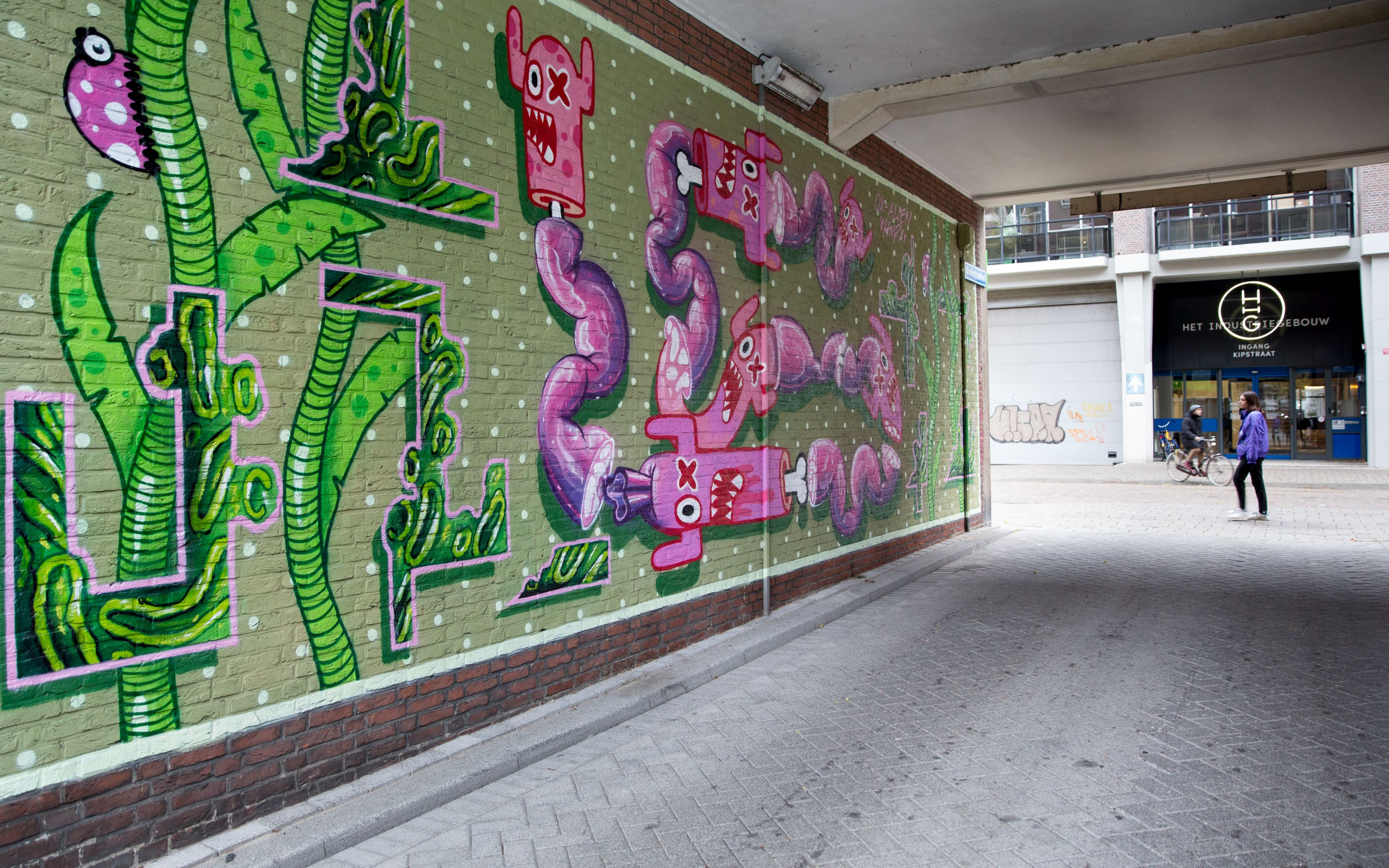Samen met haar zusje en de buurjongen speelde Marjan graag in de expeditiestraten. “Het Industriegebouw (HIG) zat toen vol met bedrijfjes. Wij zwaaiden altijd naar alle mensen en zij letten op ons. Als er iets was belden ze onze moeder.” Bram van Leeuwen – de latere Prince de Lignac – hield in die tijd kantoor in het HIG. “Hij parkeerde regelmatig zijn open sportwagen voor de ingang, sprong eruit zonder het portier te openen en snelde op zijn witte! schoenen even naar binnen.” ‘Liftje spelen’ was het favoriete spelletje van het drietal. “We hielpen elkaar om via het kozijntje op het dak te klimmen en liepen dan over de platte daken naar de flat waar nu De Gele Kanarie in zit. Via een deur in de galerij kwamen we bij de lift; die hadden we niet in onze flat. We gingen naar boven en beneden tot we er genoeg van hadden en dan netjes via het portiek weer naar buiten.”