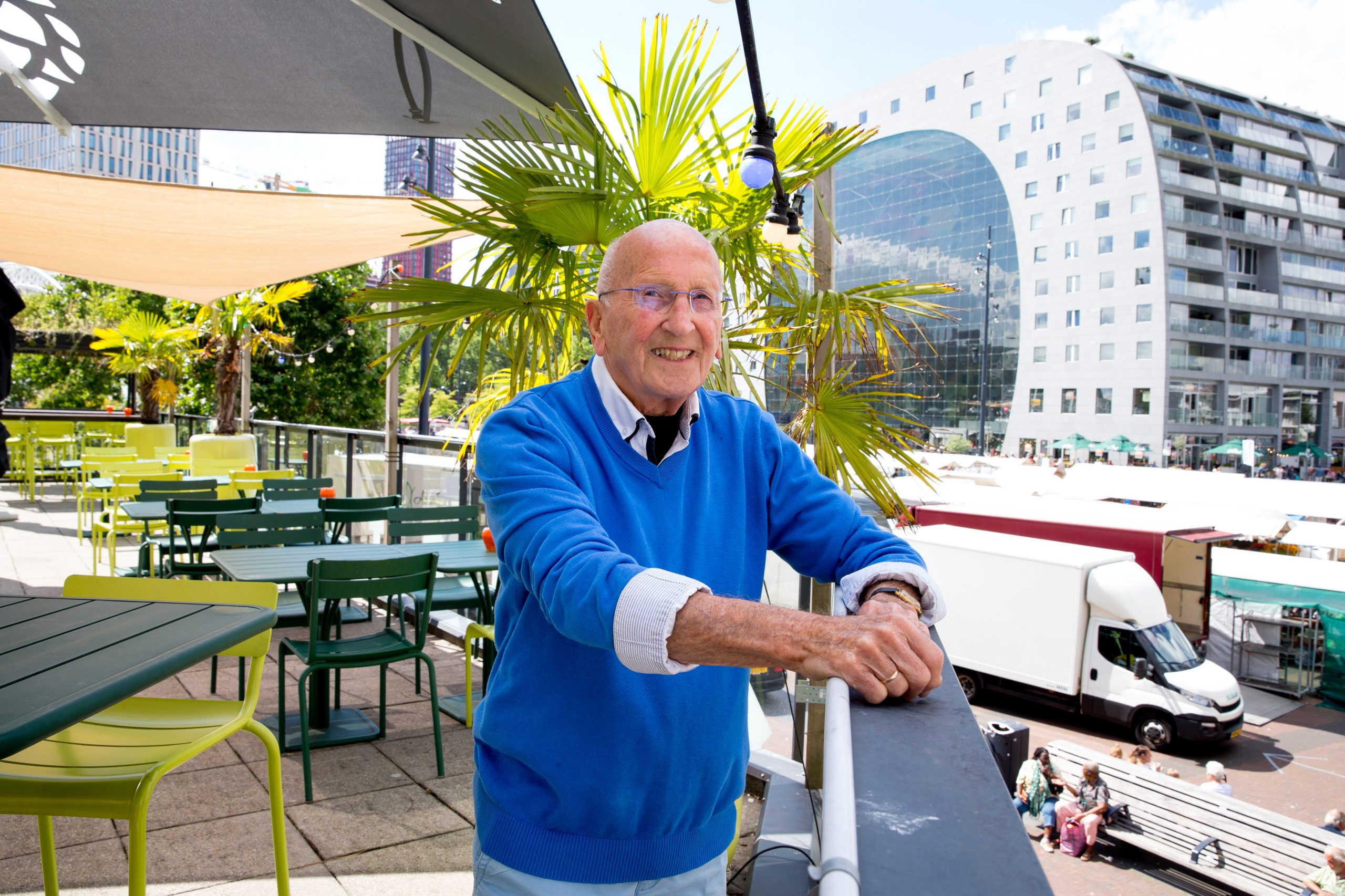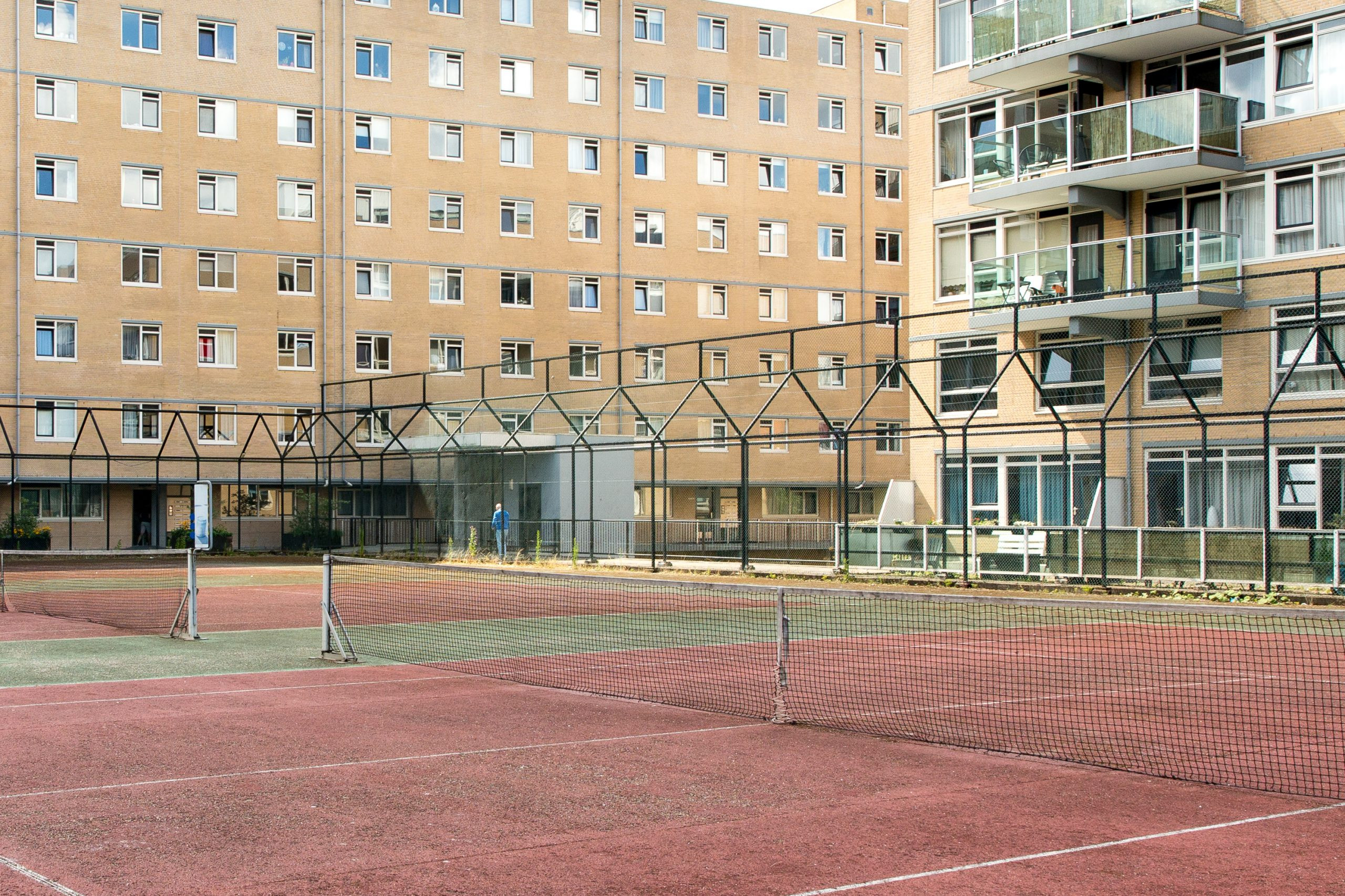 Vanaf zijn balkon kijkt Peter zo op de tennisbaan op het dak van de parkeergarage. “Het is zwaar verwaarloosd, soms gebruikt de sportschool het nog, maar het ziet er niet uit. Ik hoop dat de plannen voor het park doorgaan, want dat zou het dak enorm opknappen”, zegt Peter. “Een aantal weken geleden was er op zaterdagavond een optreden van Marja van Katendrecht in het kader van de Rotterdamse Dakendagen. Ik hoefde alleen maar met een stoel naar beneden. Ik denk dat er zo’n vijftig mensen waren, iedereen die op het dak zat kreeg een koptelefoon op. Er keken ook nog veel andere bewoners vanaf hun balkon of vanuit het raam.”