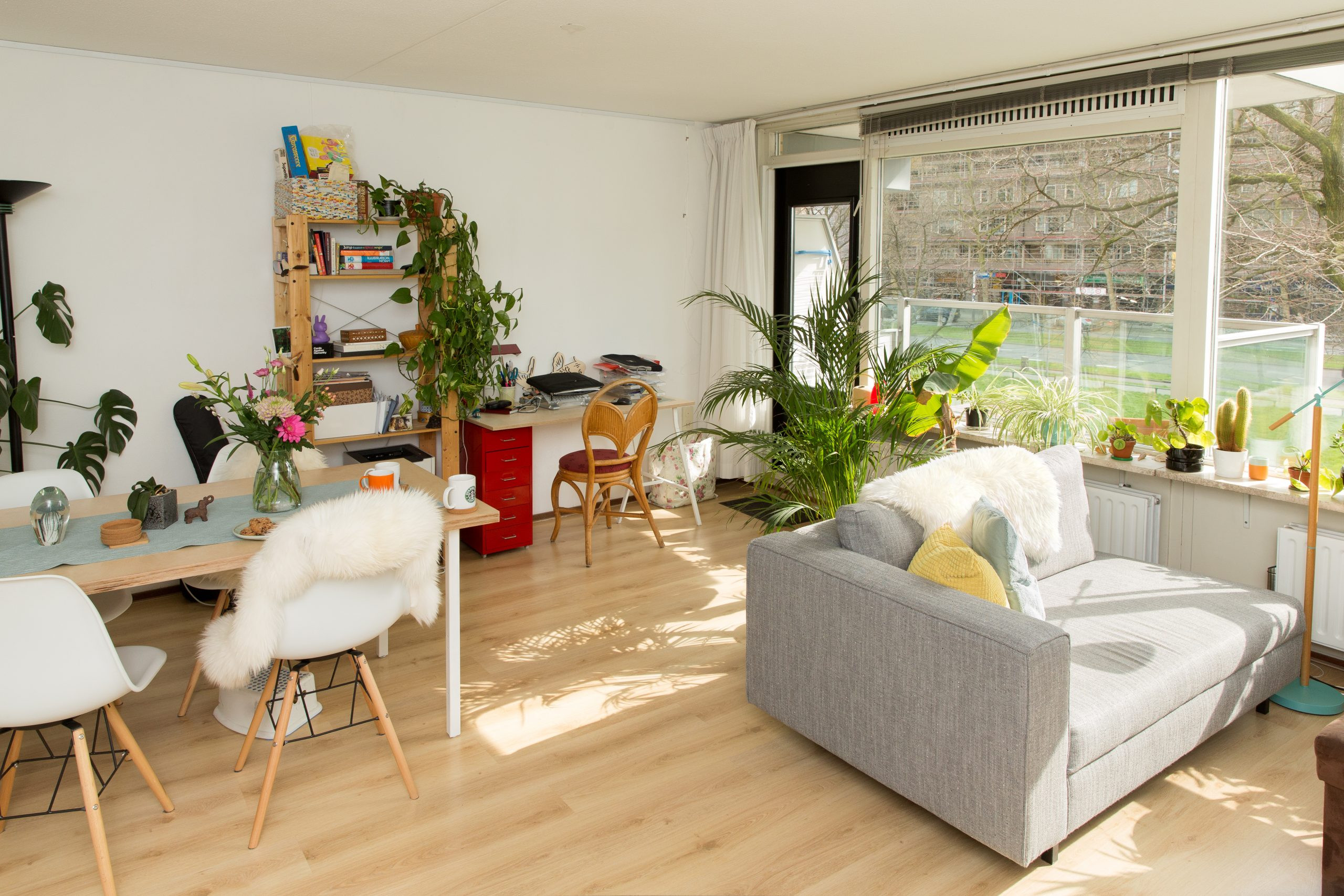 Twee en half jaar geleden horen Franz en Kwannie via een vriend over hun huidige appartement aan de Groenendaal. Ze gaan kijken en zijn meteen om. De centrale ligging is voor hen het grootste pluspunt. “Alles wat we nodig hebben, zit in de buurt.”, zegt Franz. De ruime en lichte woonkamer in hun tweekamerappartement staat vol met planten en een grote boekenkast. In de ideale wereld komt er een groter appartement boven hen vrij. “Dan blijven we op deze fijne locatie, maar hebben we ook extra ruimte.”, aldus Kwannie.