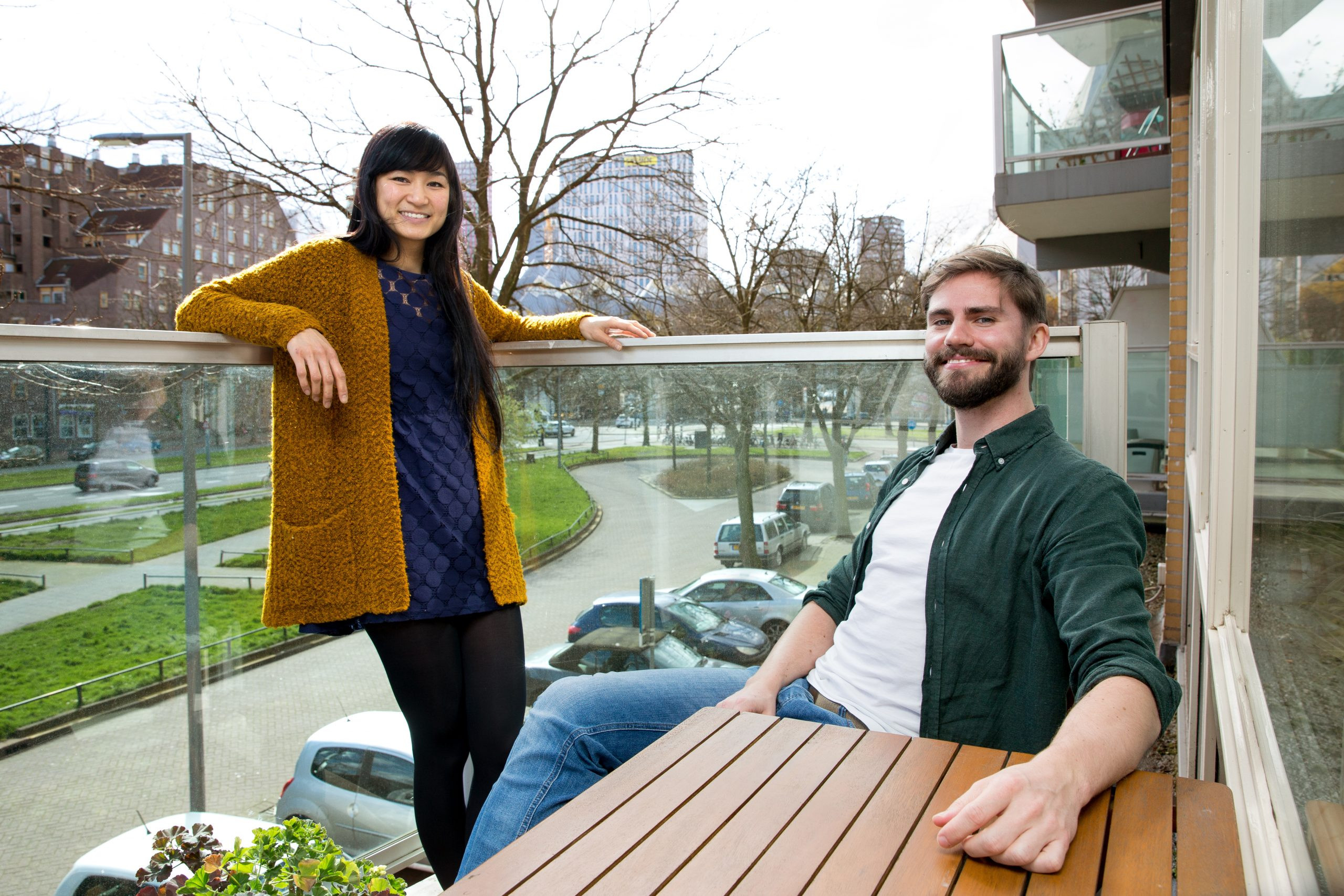 Kwannie en Franz houden van buiten zijn en zodra het kan zitten ze op hun balkon. Kwannie: “De groene strook hiervoor is een hondenuitlaatplek en ik zeg altijd tegen Franz dat ik graag een hond wil. Die zou ik dan in een mandje vanaf het balkon naar beneden laten zakken en na een tijdje terug roepen en weer naar boven takelen!”.