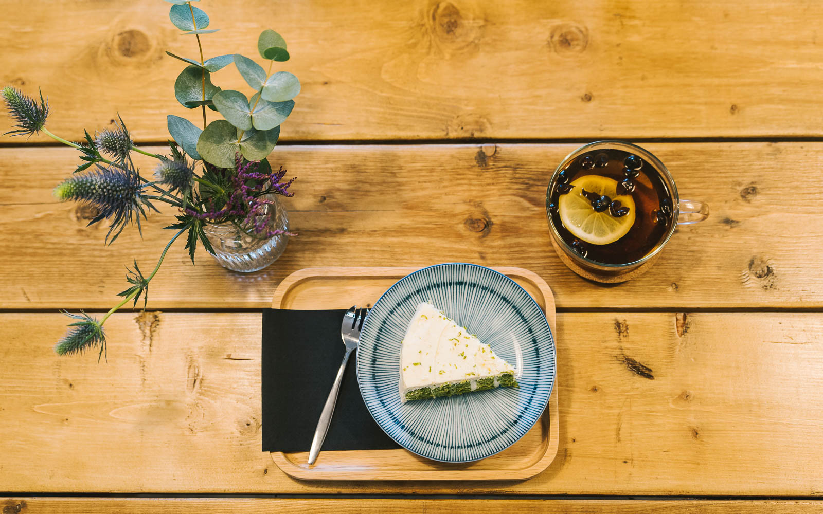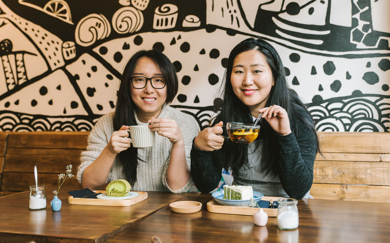 Er hangt een bijzondere sfeer in Round&Round. Bing en Chao hebben geprobeerd een klein bos te creëren midden in de grote stad. Van de zelfgemaakte muurschildering, de prachtige belichting die hangt aan grote boomtakken tot de kleine twijgjes in de designvaasjes op de tafels. Hun bos staat symbool voor een simpele manier van leven, een ontspannen moment in je drukke planning, maar vooral het genieten van de kleine en mooie dingen in het leven.