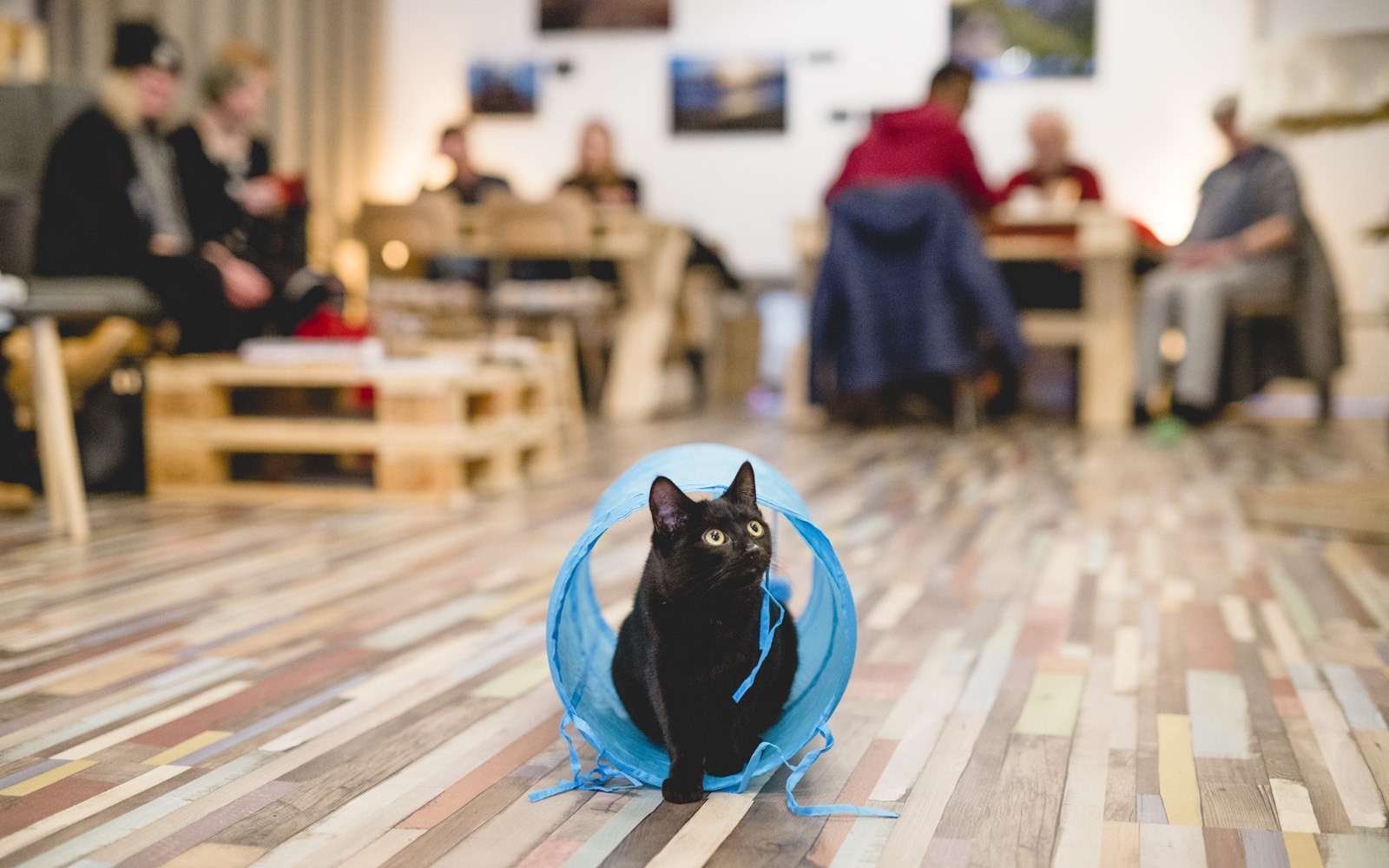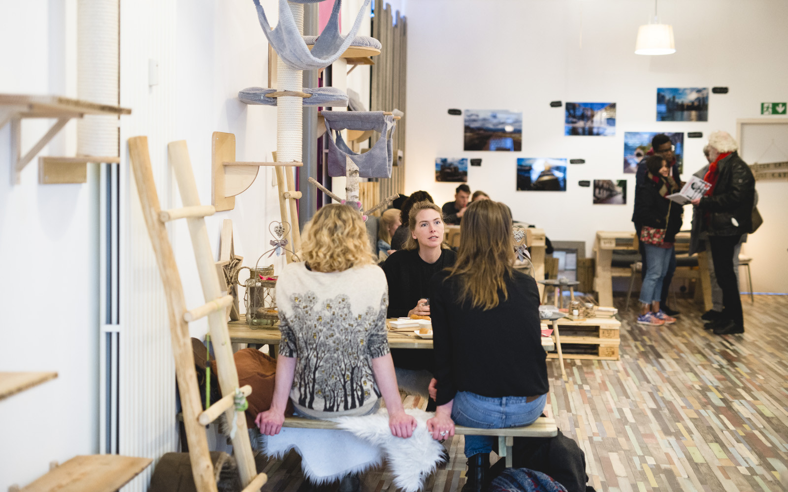 Het kattencafé is bij uitstek geschikt voor kattenvrienden die een drankje, lunch of high tea willen doen. Friederike vult enthousiast aan: “Op doordeweekse dagen is het café ook uitermate geschikt als werkplek, zo lang er geen kat op je laptop gaat liggen natuurlijk.” Reserveren is wel aan te raden, zeker in het weekend. Het kattencafé is ongekend populair bij zowel wijkbewoners als verre bezoekers, dus zonder reservering weet je niet zeker of je naar binnen mag. Daarin moet Pebbles helaas ook soms streng zijn, want te veel mensen is niet goed voor het welzijn van de katten.