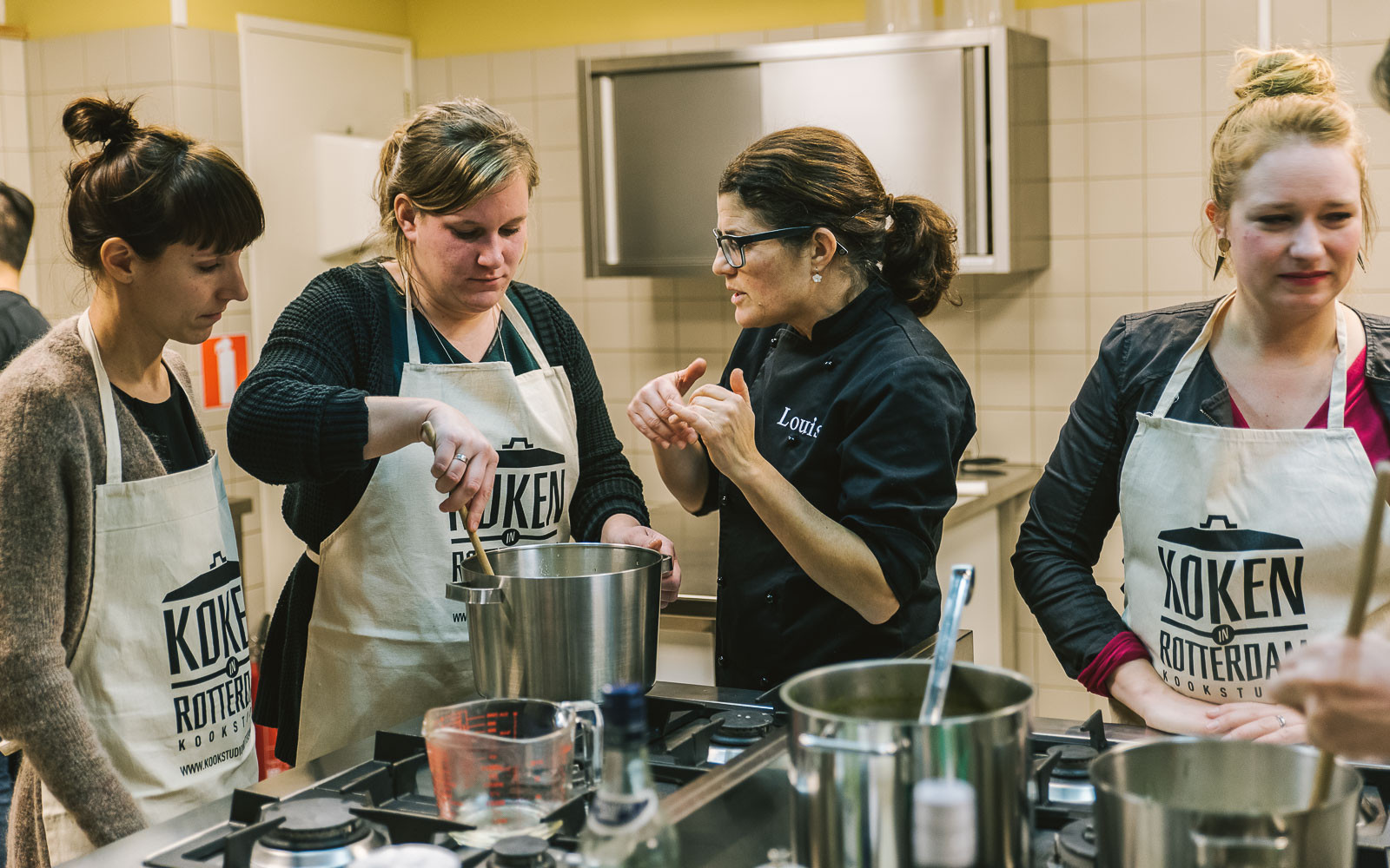 In kookstudio ‘Koken in Rotterdam’ op de Hoogstraat komt de passie en het culinaire inzicht op het gebied van de kookkunst van Louise samen: mooie gerechten bedenken en mensen enthousiast maken om te proeven, ruiken, zien en koken! Daar wordt Louise blij van! "Eten is mijn passie, liefde en beroep.”
