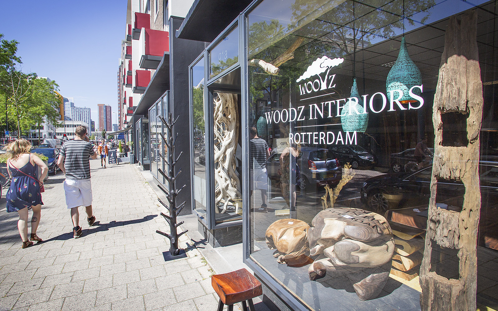 Sinds begin 2017 is er een nieuwe aanwinst in het Hoogkwartier op het gebied van wonen. Marco is met zijn winkel Woodz Interiors Rotterdam neergestreken op Hoogstraat 93a-95a. Ben je bijvoorbeeld op zoek naar een originele hardhouten boomstamtafel? Dan moet je bij Marco zijn!