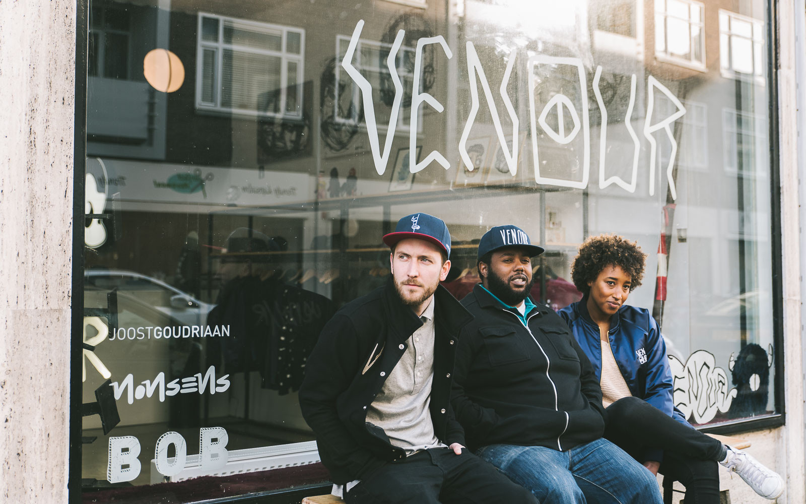 Venour is 10 jaar geleden opgericht door jeugdvrienden en inmiddels uitgegroeid tot een grote groep creatieven en vrienden die regelmatig met elkaar samenwerken. Venour werkt voor merken zoals Top Notch, Bavaria, Desperados, Mercedes/Smart en tv zenders als BNN, VPRO en Comedy Central. Zo kun je de jongens en meiden gezien hebben in diverse reclamespotjes en series. Echte BN’ers dus. Naast het werken voor dit soort klanten werken de mensen van Venour ook aan hun eigen kledingmerk. In de winkel kun je deze artikelen vinden.