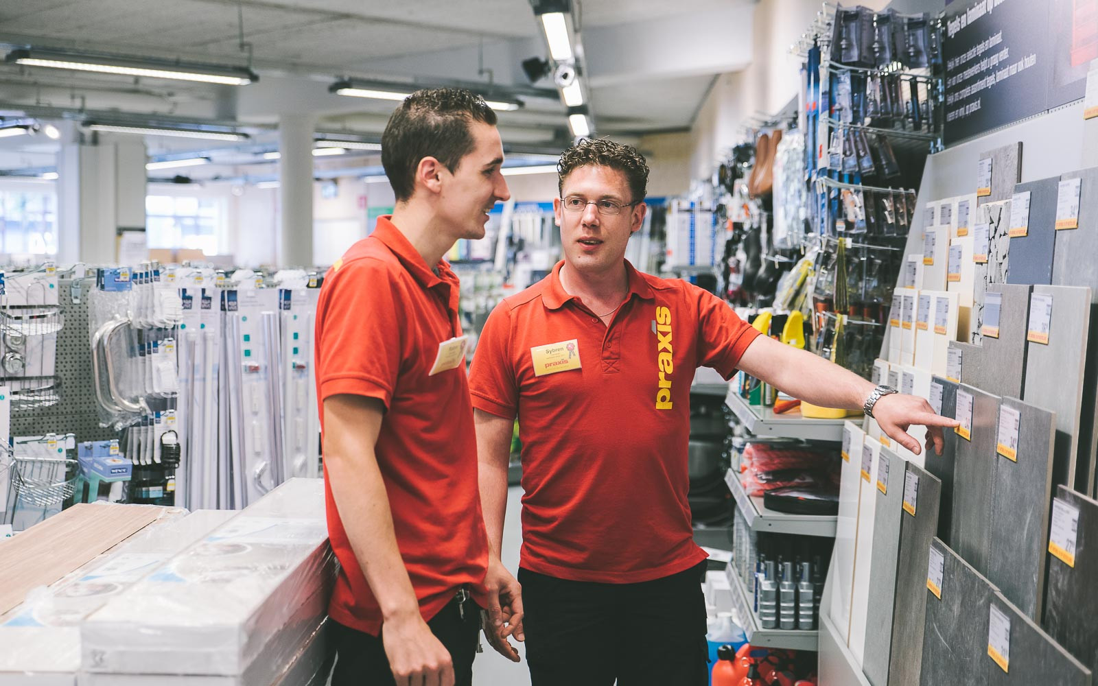 Bij Praxis om de hoek streven ze naar een hoog serviceniveau. Sybren: “We proberen om de klant met alles te kunnen helpen. We hebben ook echt een hoop klanten uit de buurt. Sommige mensen komen wel drie keer per week wat halen.” Robin vult aan: “We hebben ook veel klanten uit de appartementen boven ons. Eén van de bewoners kwam met haar man naar de winkel zodat hij kon zien wat we allemaal hadden. Toen zei ze letterlijk tegen haar man: “Nu heb je geen smoesjes meer om de klusjes in huis uit te stellen, want je kunt de spullen hier zo gaan halen.” Dat zijn natuurlijk wel erg grappige ontmoetingen”.