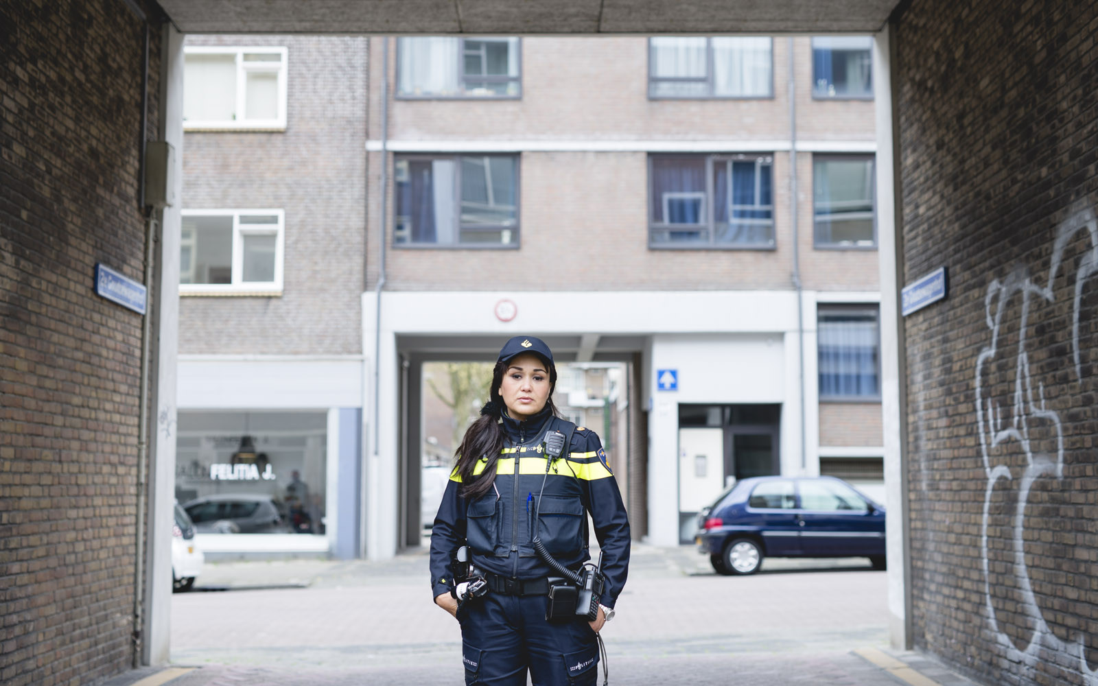 Ongeveer 9 jaar geleden is Saloua gestart als wijkagent in het Oude Westen, een diverse wijk met veel verschillende culturen en gebruiken. “Ik heb daar met veel plezier 7 jaar gewerkt.” Saloua vervolgt: “In 2013 kregen we de Nationale Politie en is ervoor gekozen om alle wijkagenten in het centrum te wisselen. Ik werd in de Stadsdriehoek geplaatst. Ik heb erg moeten wennen aan het centrum. Het is bijvoorbeeld veel groter dan het Oude Westen en heeft een andere problematiek en dus aanpak. In het Oude Westen is het werk letterlijk op straat te vinden. In het centrum moet ik als wijkagent het werk ook achter de voordeur zoeken. Dat vraagt om een hele andere manier van werken.”